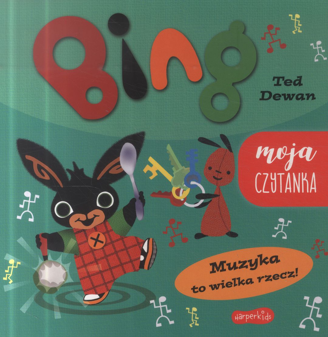 Dołącz do Binga i poznaj świat dźwięków. Bing to bohater ciepłych, mądrych i pełnych uroku opowieści Teda Dewana, na podstawie których powstał serial uwielbiany przez maluchy na całym świecie. "Muzyka to wielka rzecz!" to książka, w której czarny króliczek uczy się, że muzyka jest wokół nas. Bing i Flop używają codziennych przedmiotów, takich jak dzwonek, tuba, puszka z ryżem, czy klucze i poznają świat dźwięków. Przekonaj się razem z nimi, że w zwykłych przedmiotach też kryje się muzyka, potrzeba tylko trochę wyobraźni, żeby ją wydobyć. Opowieść o dźwiękach ukrytych w przedmiotach to doskonały punkt wyjścia do rozmów z maluchem o jego (lub jej) własnych przygodach.